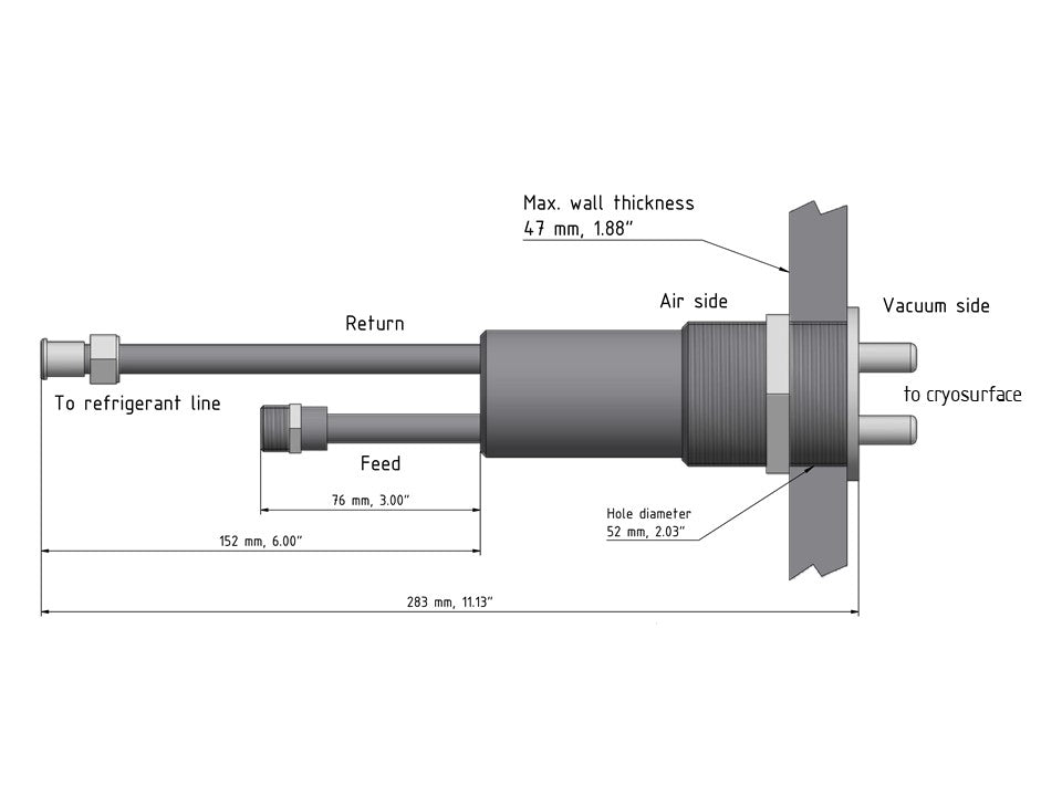 Our feedthroughs are offered in different versions as 1-pass feedthroughs with thermal insulation between the feed/return line or 2-pass feedthroughs.